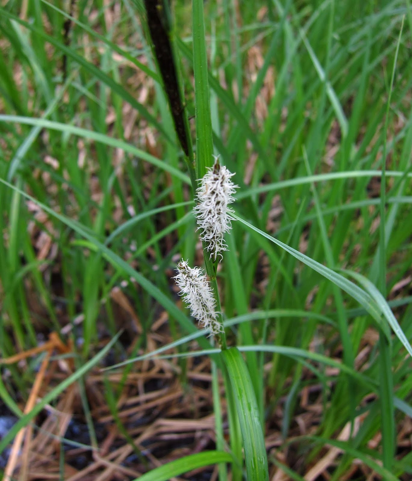This was surely a new sedge for me. How could I have missed seeing it before? For a graminoid, it's very large and showy. I would have taken more and better photos of it, but it started to rain in earnest, so Sue and I packed up our cameras and headed home. Such a busy, botany-filled day. Now it was time for a nap.