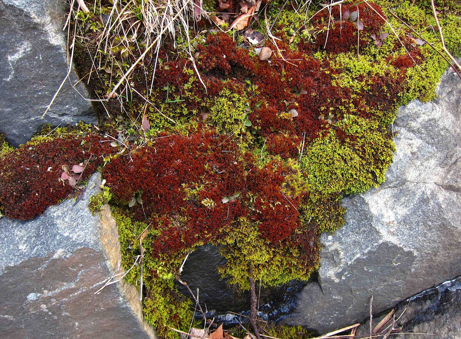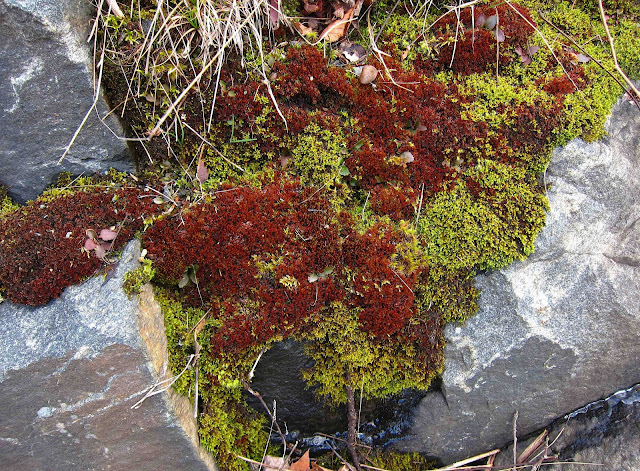 Some of the mosses that grow there have put on their Christmas colors of red and green.