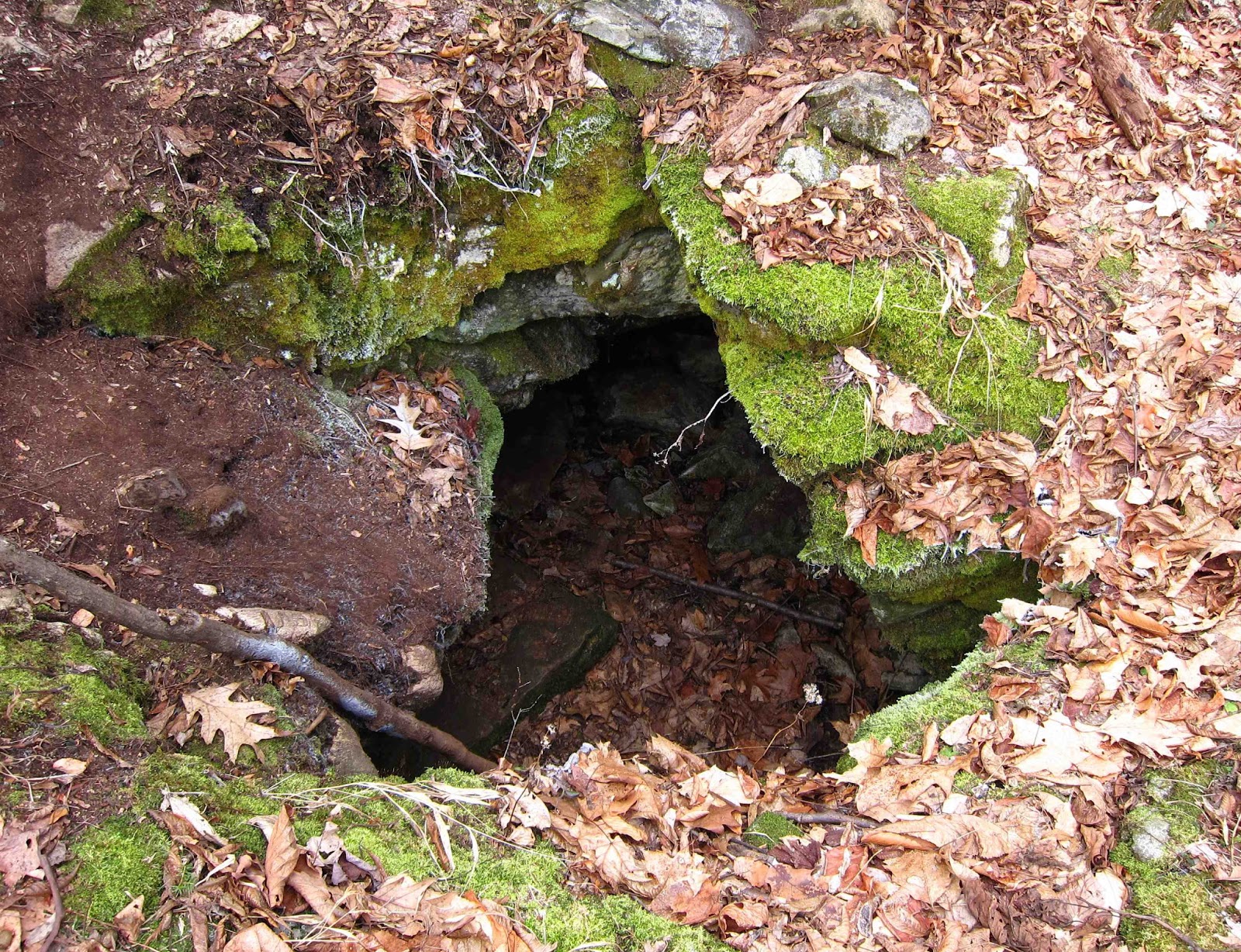 Here's the entrance to one of the caves, certainly large enough for an adult person to climb down into, although the odor from generations of porcupines who are not too tidy about their housekeeping would tend to deter one from doing so.