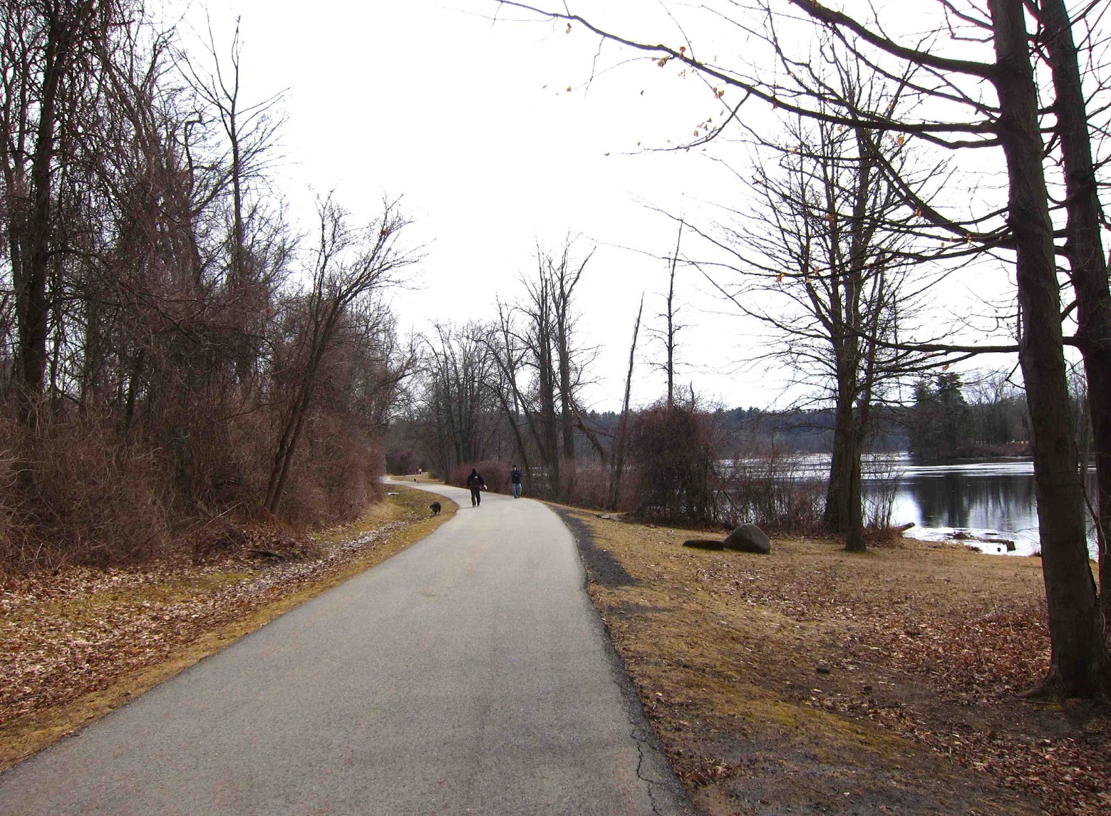 When I was a kid, the sight of a robin running across the grass was a sure sign of spring. Not anymore, it seems, and especially not in this place -- the Betar Byway in South Glens Falls -- where robins flock together all winter long, feasting among the tangled masses of Oriental Bittersweet. I came here today to work up a little sweat with fast walking along the paved path that follows the Hudson River just above the Glens Falls dam. It's a pleasant unobstructed place to walk, and a great birding site, especially now, with the river running free of ice, inviting many different species of migrating songbirds and waterfowl to stop for a rest and to feed.