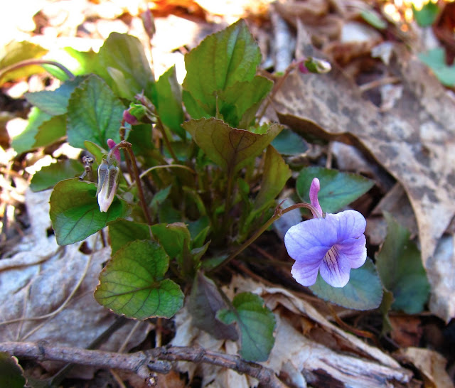 An open flower at last! On Thursday, we searched and searched for violets of any species in the Skidmore Woods. It wasn't until the very last moments of our wanderings there that we found this single bloom of Long-spurred Violet. With the stretch of warm days now predicted for the coming week, the forest floor should soon be all abloom with these and many other spring wildflowers.