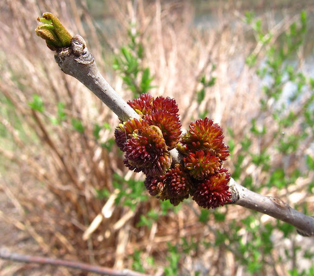 Well, Wednesday was so sunny and warm, I got my hopes up that buds would soon burst into bloom and leaf. But then came Thursday and Friday with their cold gray mornings, and if the flowers and trees had started to open their buds, they quickly retreated. On Thursday, I was out in the Skidmore Woods with the Thursday Naturalists, and on Friday I hiked the Denton Preserve near Ft. Miller with my friend Sue. Disappointed both days by the scarcity of blooms, we amused ourselves by admiring the many buds that are biding their time. And truth to tell, many of the buds are worthy of plenty of admiration in their own right. Here are a few of those we found.