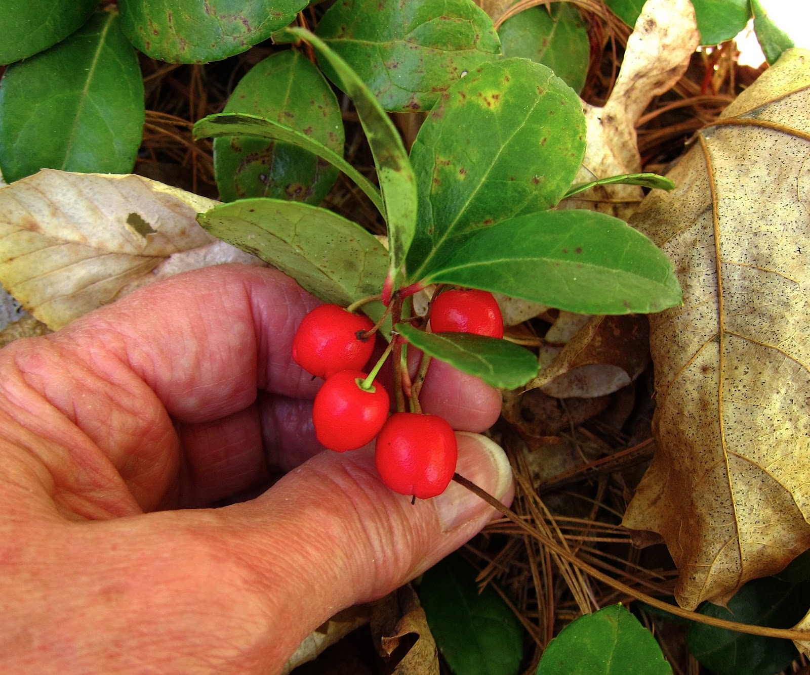 Wintergreen, on the other hand, is one of the most persistent plants we have, with both leaves and fruits looking fresh and plump all winter long, well into the following summer.