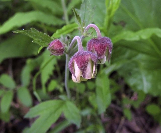 Believe it or not, these Water Avens flowers are in full bloom. Its flower doesn't open any wider than this.