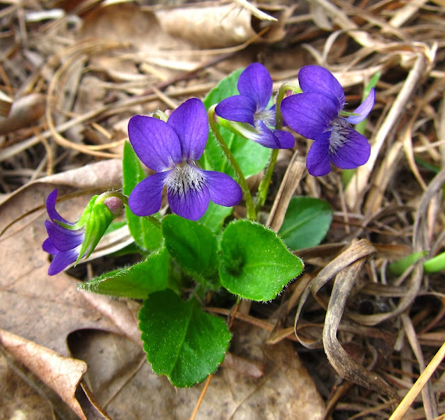 There were very few flowers blooming out on the stony shore, so these tiny Ovate-leaved Violets (Viola fimbriatula) would have stood out even if their petals were not so vibrantly purple.