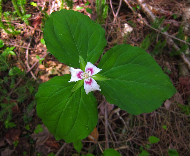 And finally, there was Painted Trillium (Trillium undulatum), a trillium species that loves the north woods and rarely shows its beautiful face as far south as Ohio. Andrew was the first to spot it growing along our trail to visit the Hooker's.