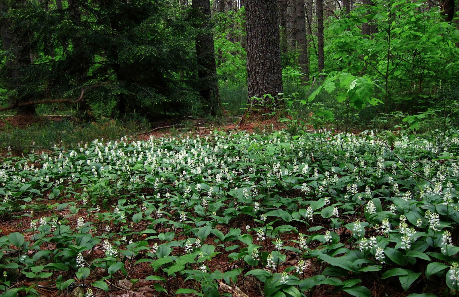 This was truly an enchanted forest, with the beauty of the Lady's Slippers complemented by the heady sweet fragrance of thousands upon thousands of Canada Mayflowers (Maianthemum canadense) thickly carpeting the forest floor. Until experiencing such masses of these tiny white Lily-family flowers all blooming at once, I had never realized that they were indeed so fragrant.