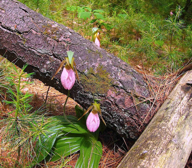 We had no sooner left the main trail to explore the woods than we were met with the sight of dozens and dozens of Pink Lady's Slippers (Cypripedium acaule), all in beautiful bloom, wherever we looked.