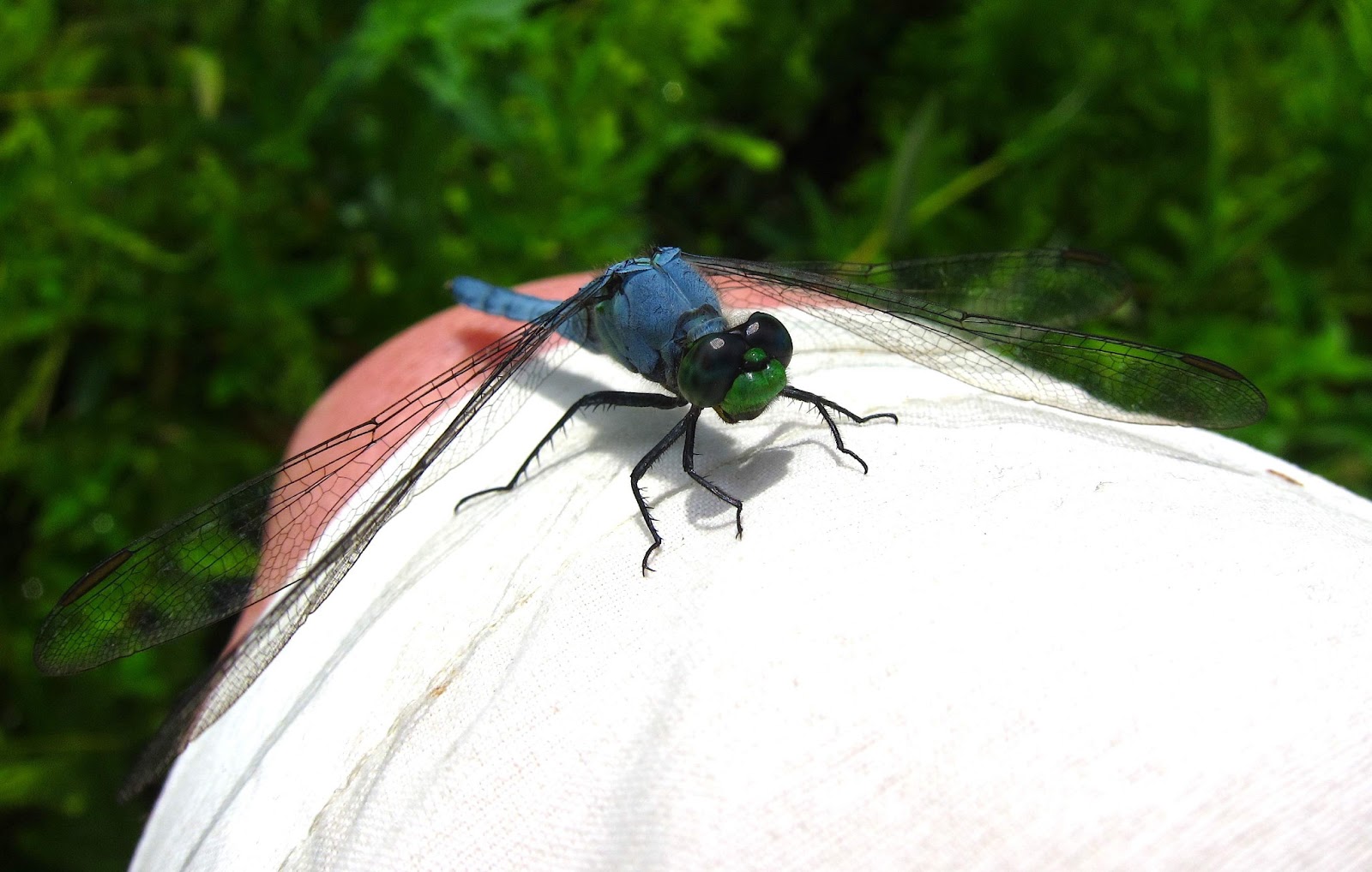 Hey buddy, I'm too big to eat! This Eastern Pondhawk just would not leave me alone and kept returning to perch on my knee again and again, even after I shooed him away.