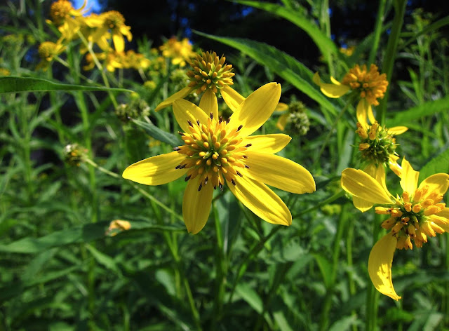 Just a few miles south, along this same route, is another healthy population of a native American but completely disjunct species, Wingstem (Verbesina alternifolia), a flower that rather resembles Sneezeweed on steroids. Once again, this is a plant so tall and showy, it would be hard to miss, if I had seen it growing anywhere else in the area. Which I haven't. Botanists haven't reported it growing anywhere closer than many counties away. Perhaps it was planted, perhaps it fell off a truck. Who knows? All I know is that it is thriving at the intersection of Rte. 50 and Ingersoll Rd. in the Town of Wilton in Saratoga County, and I expect I will find it there for many years to come.