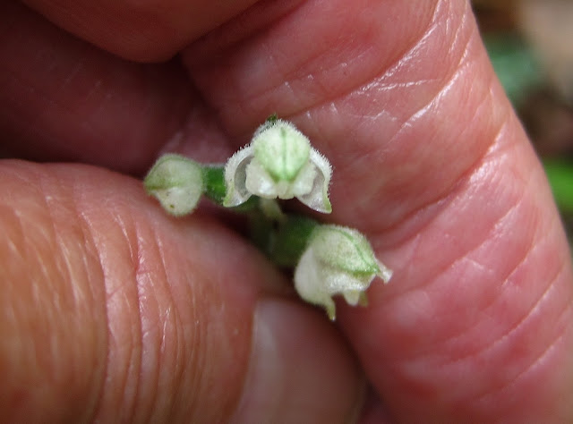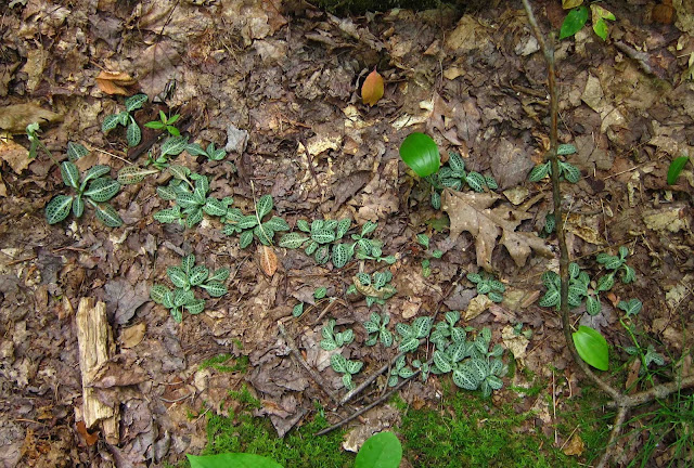 Actually, I DO know other places to find Downy Rattlesnake Plantain (Goodyera pubescens) in addition to the Bog Meadow Nature Trail. But this trail is really easy to get to, just east of Saratoga, and I've been observing a patch of this small native orchid for many years. Last year, there wasn't a single flower stalk in the entire patch, while the year before there had been over a dozen. Orchids are like that, I've heard.