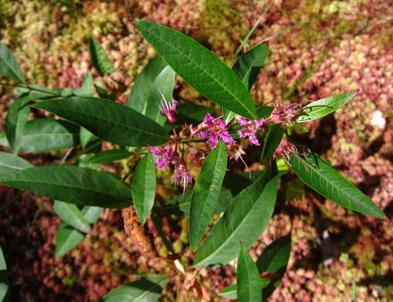 Swamp Loosestrife (Decodon verticillatus) was much easier to spot, with its vivid pink flowers and large green leaves. Although this pretty plant is related to the highly invasive Purple Loosestrife (Lythrum salicaria), and even resembles it, Swamp Loosestrife is a native plant and a welcome inhabitant of swamps and shores.