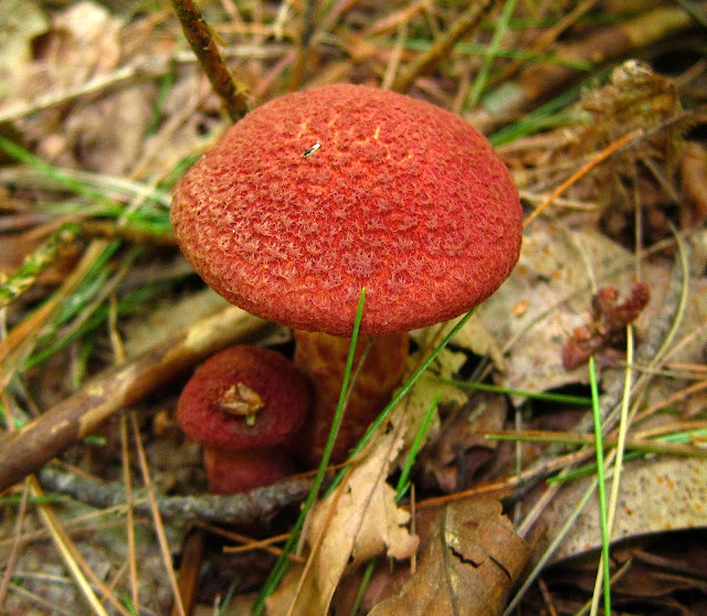 Another edible Suillus, called Painted Bolete (Suillus spraguei) had fruited nearby. I've tasted this one and found it not so tasty. It sure is pretty, though, with that rusty red cap that looks like it's made out of mohair.