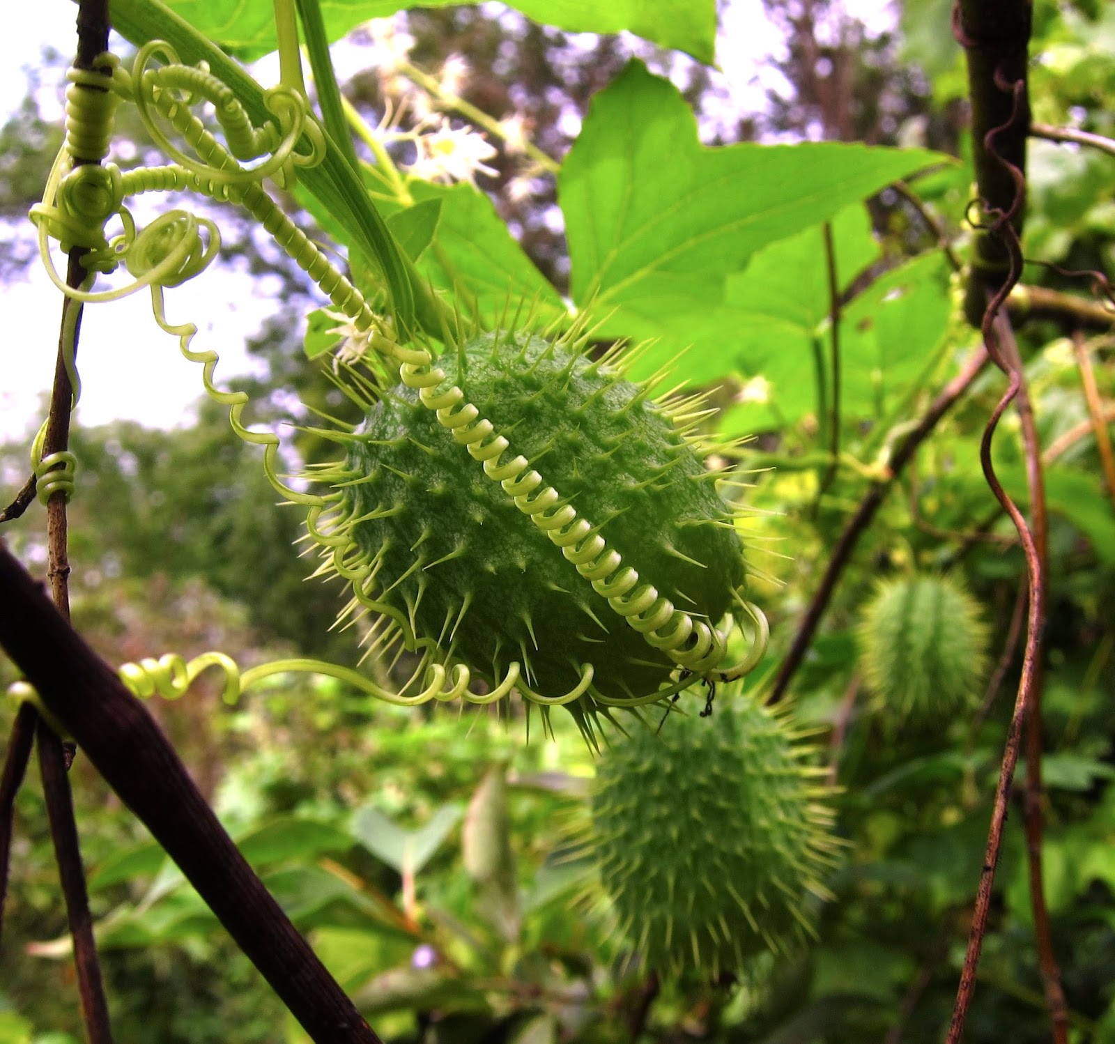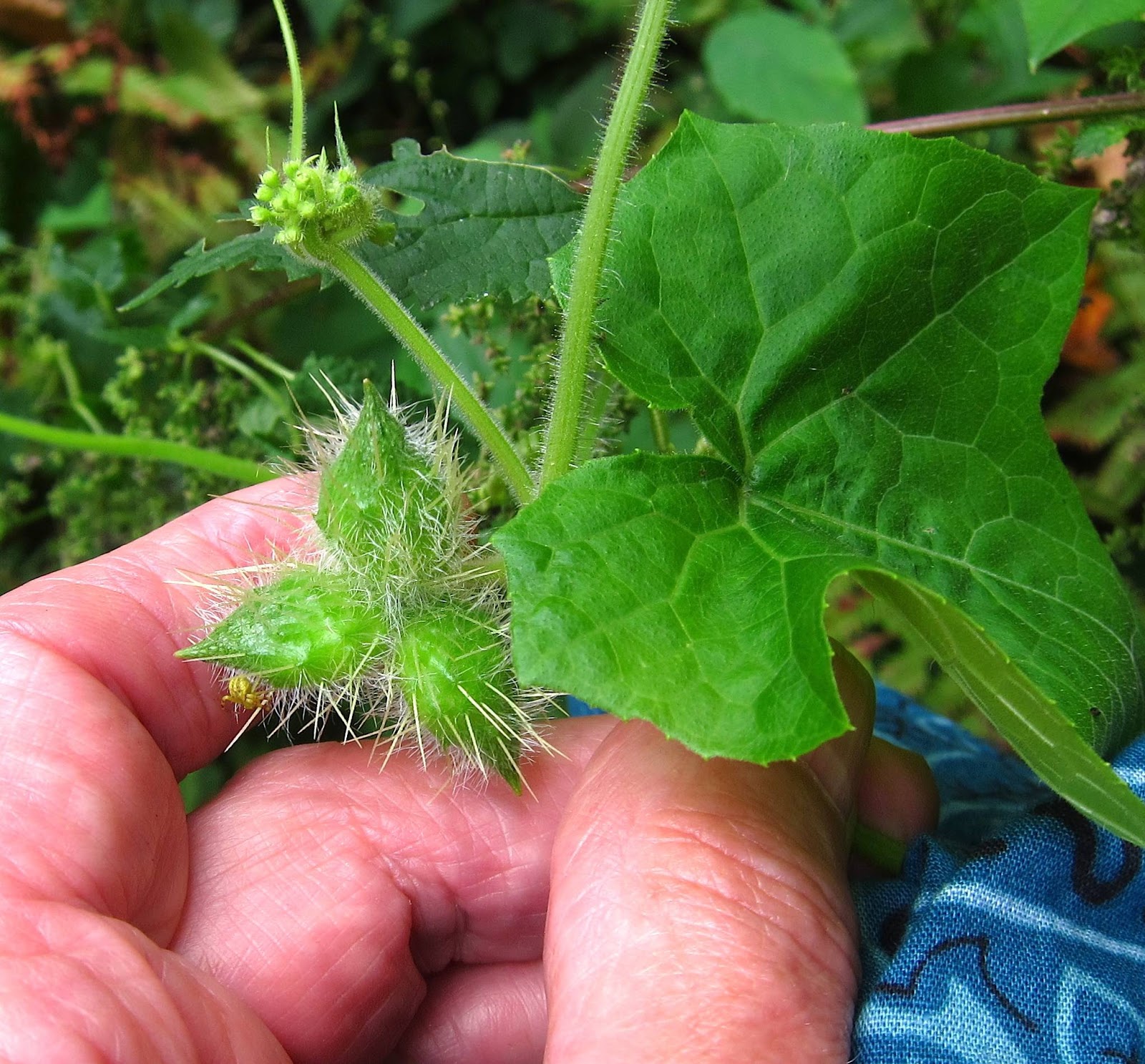 This is the bristly three-parted fruit of One-seeded Bur Cucumber.