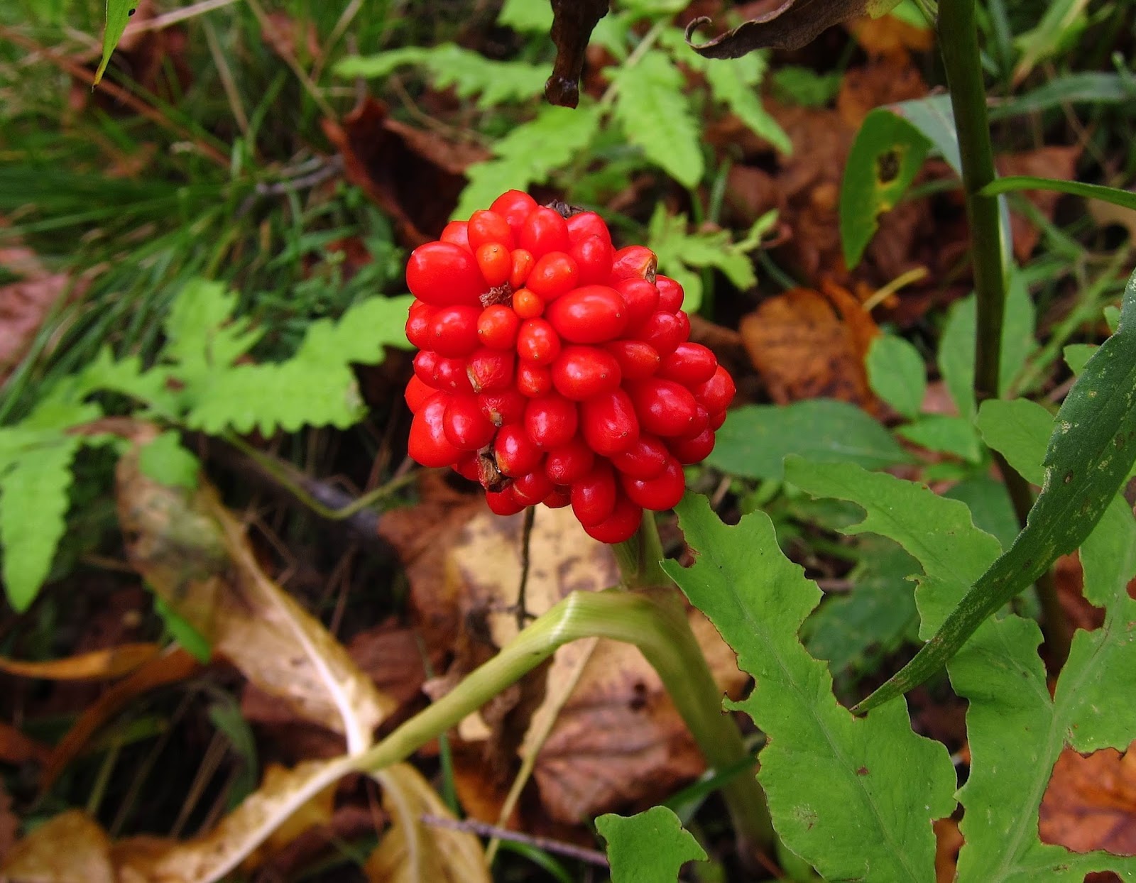 Nearby, near the water's edge, a cluster of brilliant red Jack-in-the- Pulpit fruits was easy to spot from the trail many yards away.