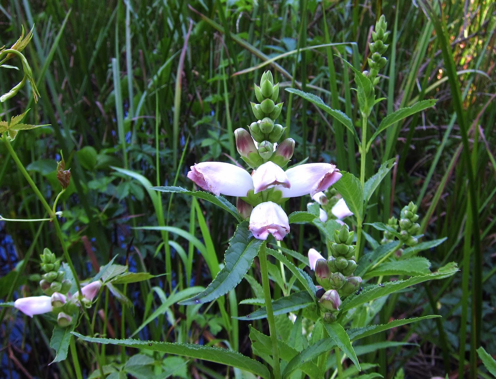 I was surprised that we found only a few plants of Turtlehead (Chelone glabra) along the canal. The few we did see, though, were prettily tinged with pink.