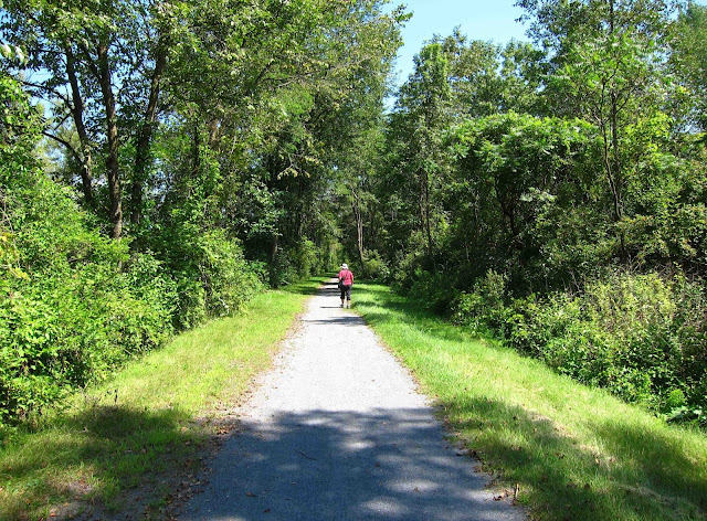 Sue and I were content to stroll just a mile or so along the canal, at times creeping quietly up to the edge to observe a number of Green Herons hunting for fish in the quiet waters. Here, a heron shares a log with several Painted Turtles.