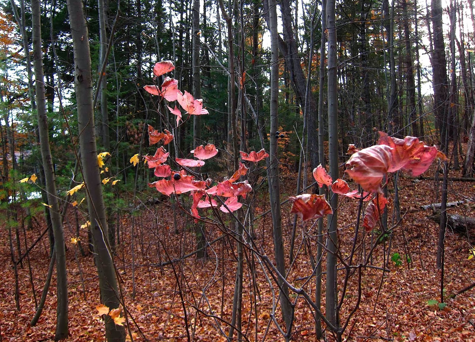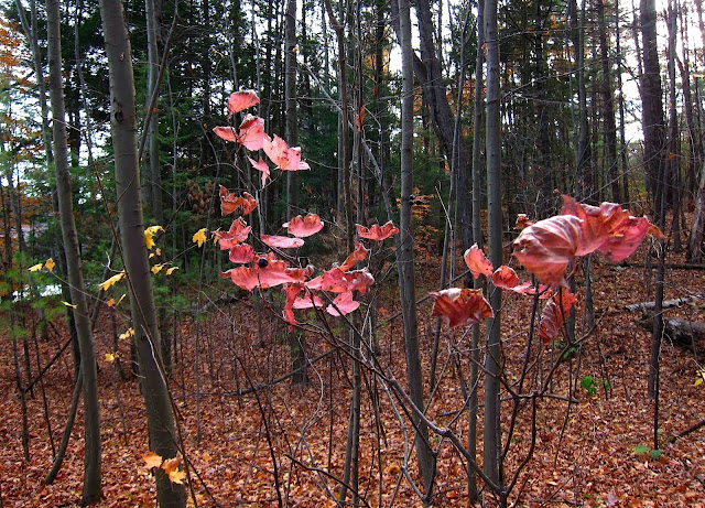 The vivid pink leaves of Maple-leaved Viburnum still put on a colorful display.