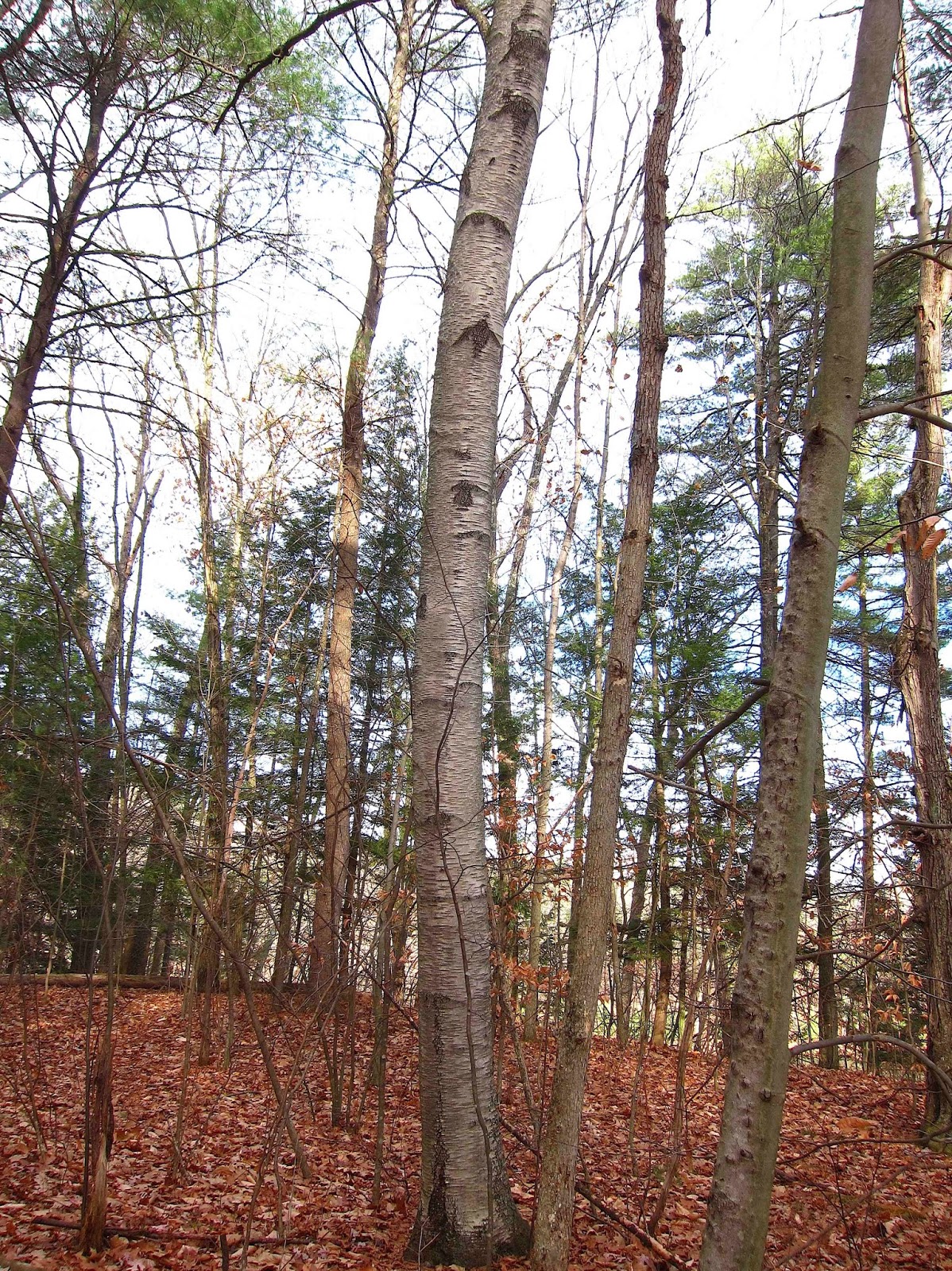 I was happy to correct my misunderstanding regarding Gray Birch, a tree I have often mistaken for Paper Birch, due to the white color its bark sometimes displays, as in this photo. The bark of Paper Birch, however, peels off in wide swaths and does not display the tell-tale chevrons that decorate the trunks of Gray Birch, an early succession birch that will die before it reaches great age. If you look around a mature forest and note the whitish trunks lying about, these will almost always be those of Gray Birch.