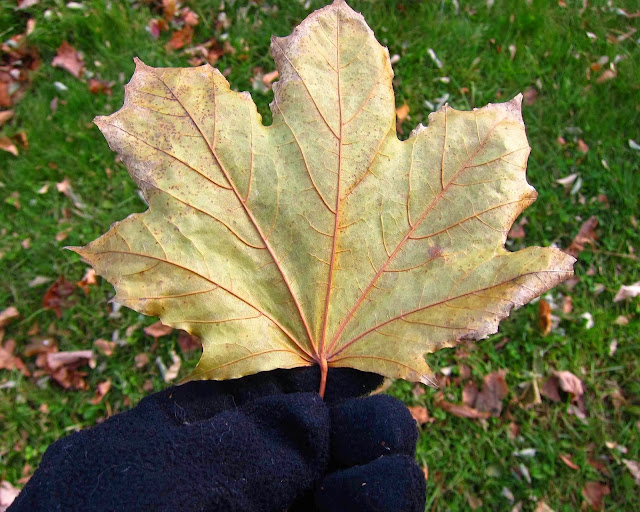 Oaks come in even more species than birches do, and we knew that both Bur Oak (left) and Scarlet Oak were growing in the surrounding woods, just by finding their leaves on the ground.