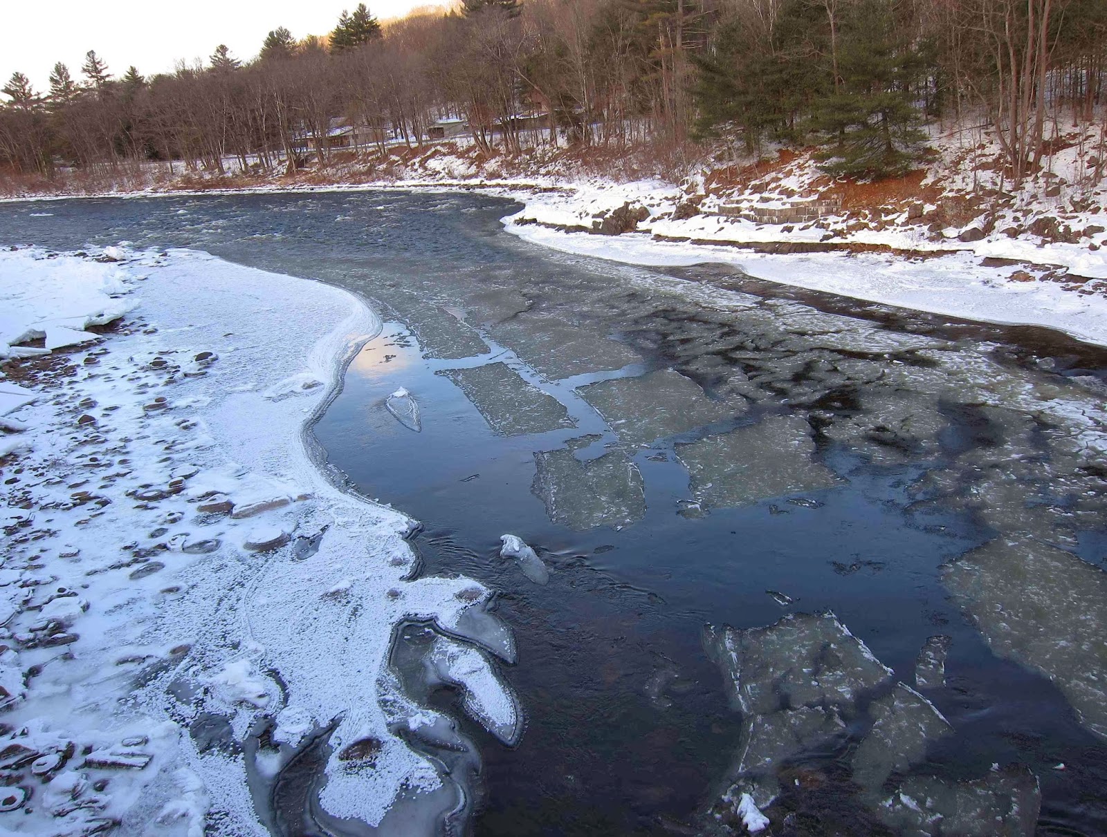 When I reached the Rte. 28 bridge across the Hudson at The Glen, I could actually watch the frazil being formed in the turbulent rapids just upstream.
