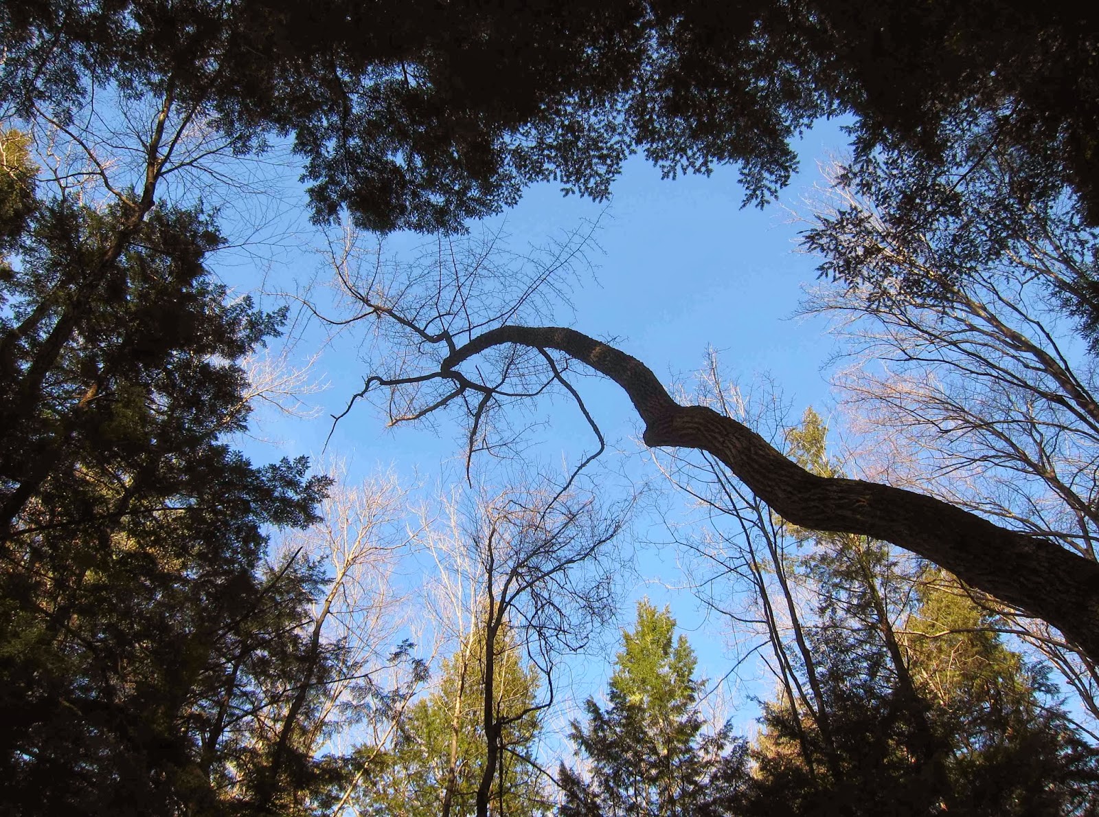 It's hard to think of Saratoga County's weather as being moderated, since our winters can bring us bitter cold as low as 30 below zero, but we certainly do have Black Tupelos not only surviving, but thriving. As Nancy and I climbed the river bank back to our car, I showed her another tupelo tree, this one growing deep in the woods. Note that it has no low branches sweeping down, unlike the ones that grow along the river. Is this because it is much older than those, or because it grew up crowded by hemlocks on every side? Hmmm. . . . Another question to ponder.