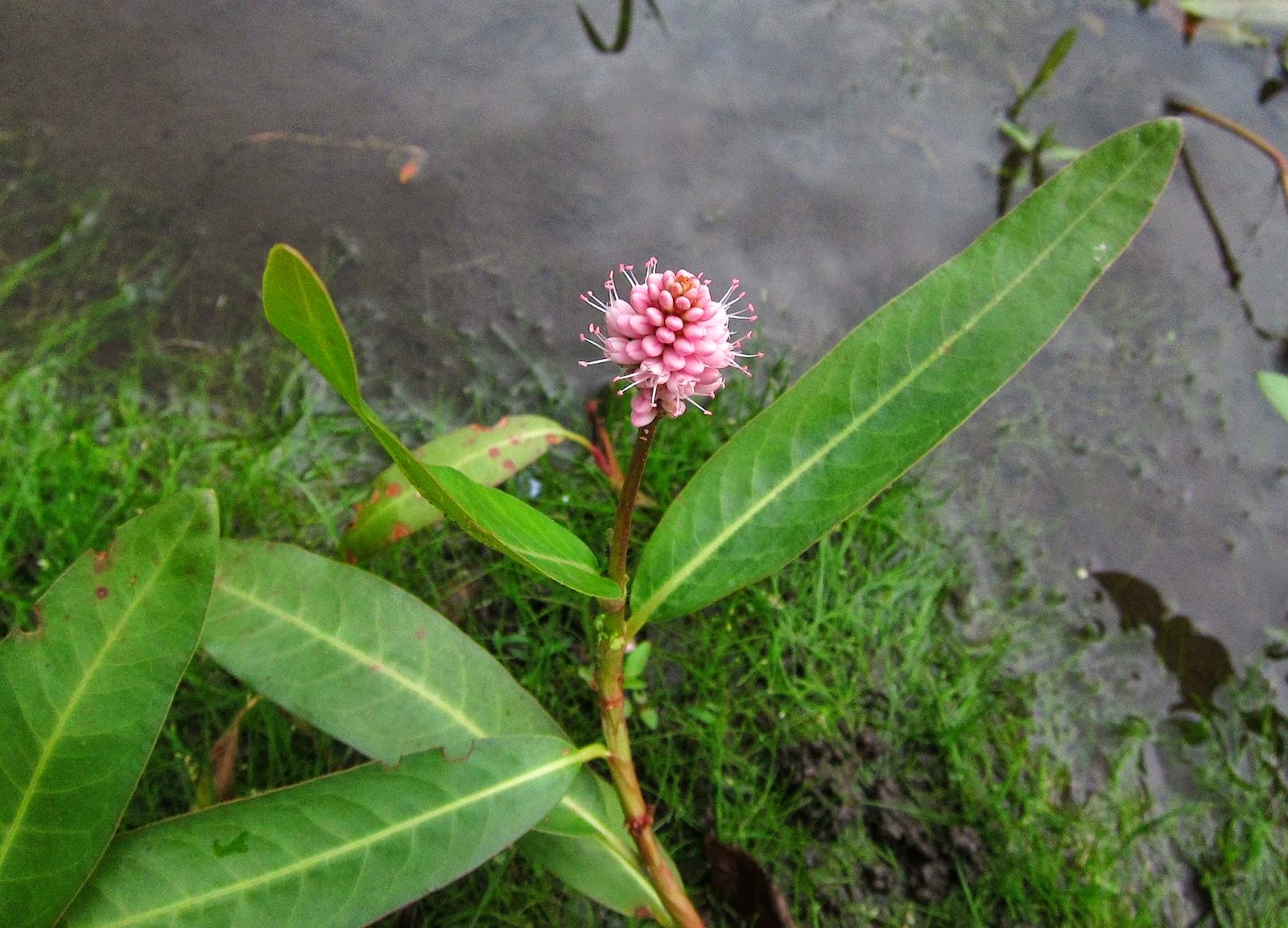 This pretty pink Water Smartweed plant (Persicaria amphibia) was well ashore, while others of its kind were happily floating in shallow water, as amphibious as its Latin name suggests.