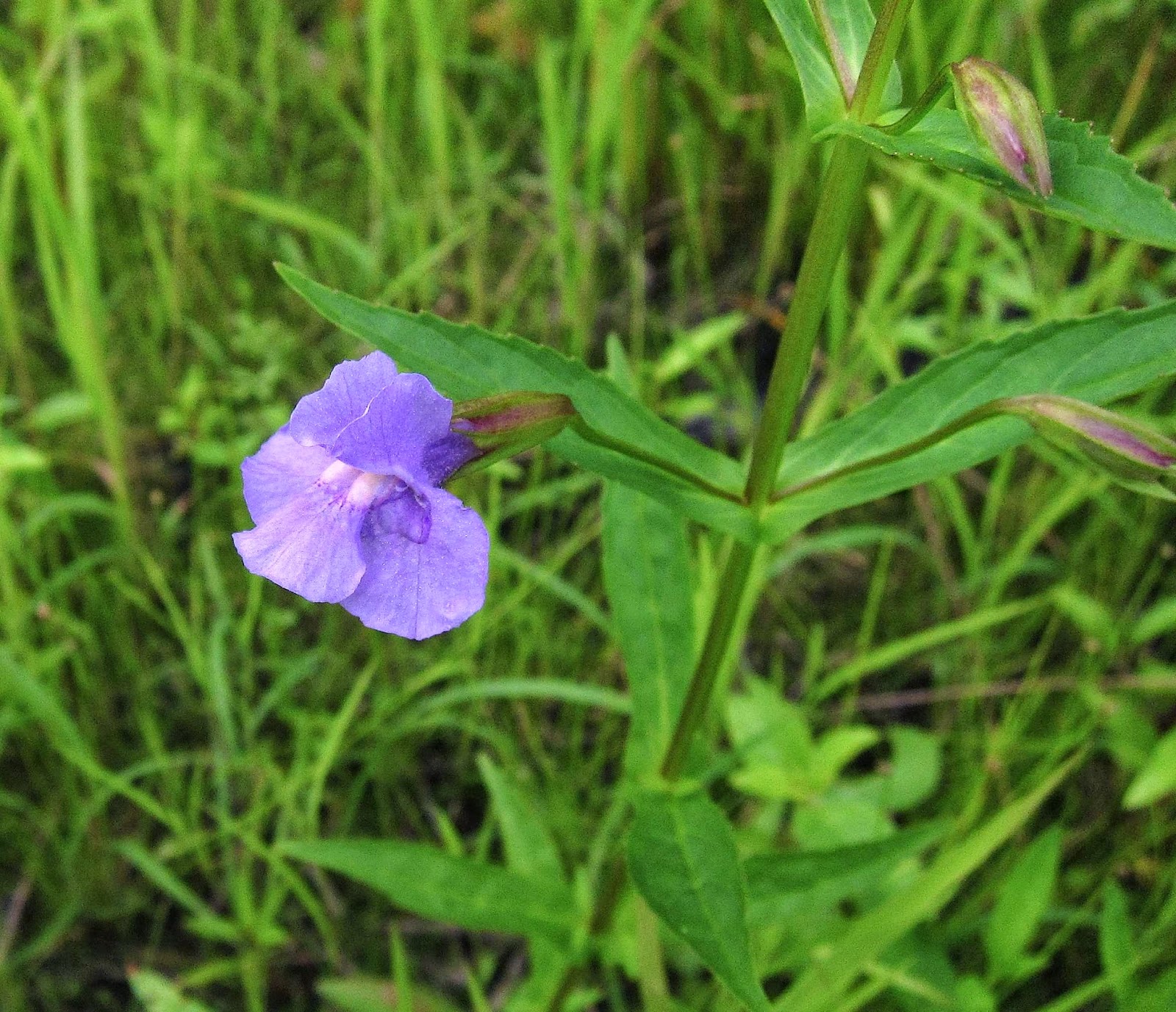 The Ditch Stonecrop was abundant out on the muddy shoreline, but I found only two specimens of the pretty blue Monkey Flower (Mimulus ringens).