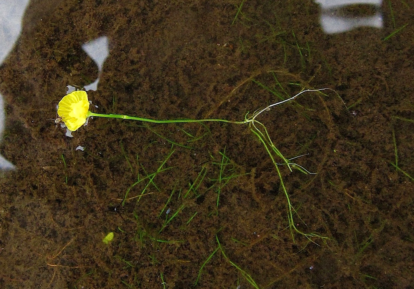 I extracted one plant from its muddy matrix and washed the mud from its underwater structures.  I must have left some of its underwater parts behind, because I don't see see any of the minute sacs that all bladderworts use to trap and digest tiny organisms.