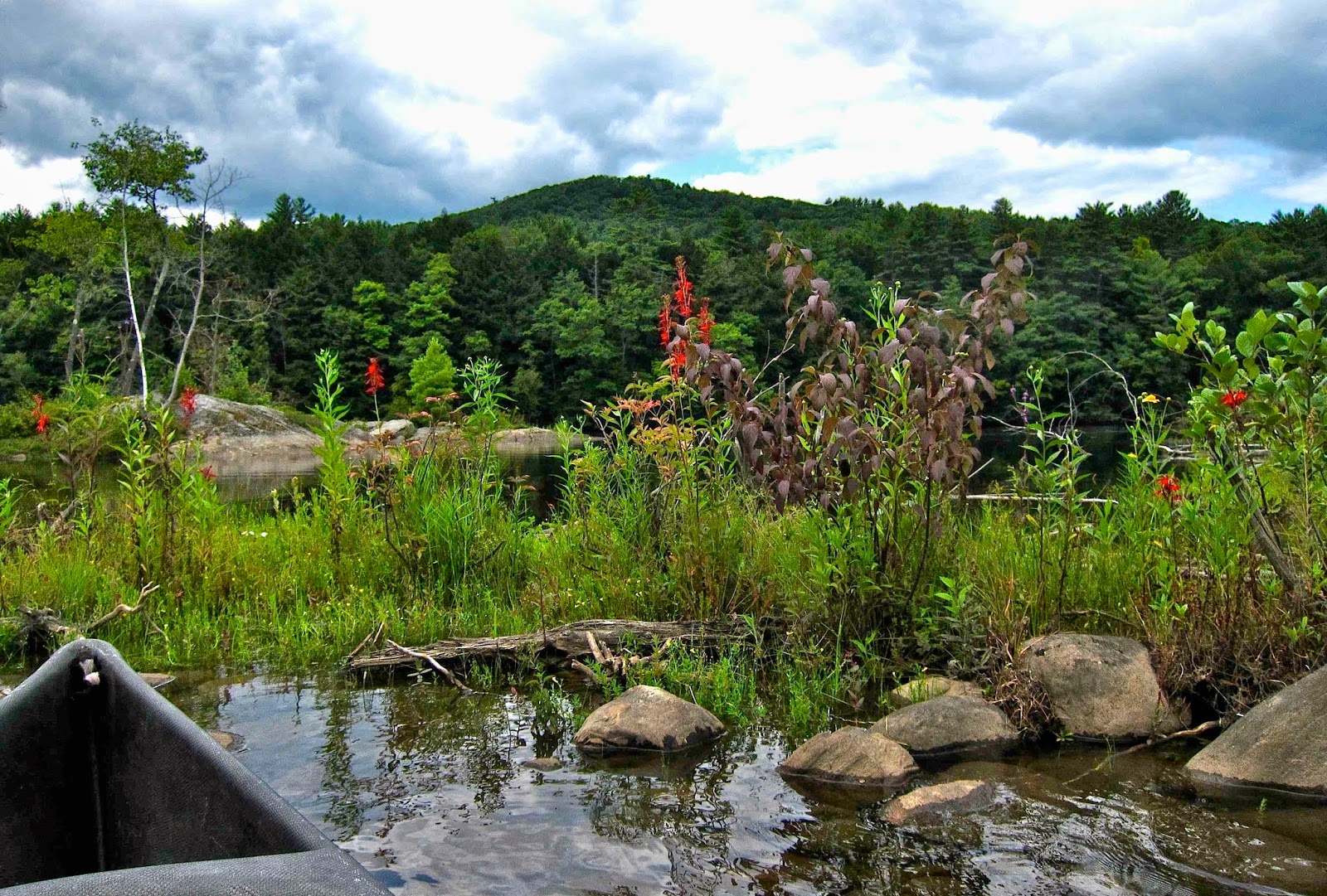 It's August, the season for riverbank flowers to come into their fullest glory. Friday afternoon found me slipping slowly along the banks of the Hudson River below the Spier Falls Dam, delighting in the reflections of mountains and forest, their cool green serenity punctuated by the brilliance of late-summer blooms.