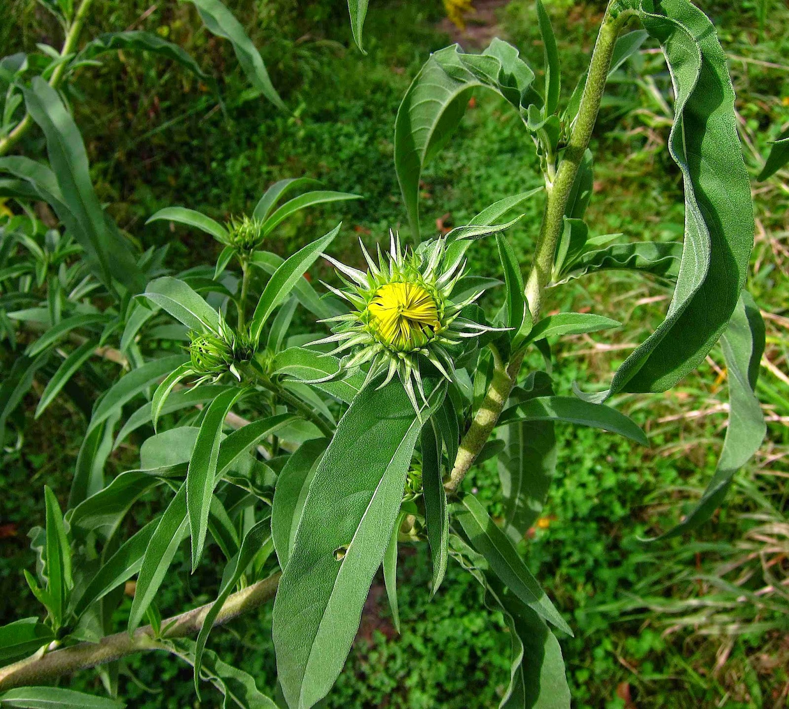 Ever since the soil along these banks was denuded and new plantings were brought in, I keep discovering new and disjunct species of flowering plants that were never here before. Not all of them persist. Last year I found Partridge Pea and Sawtooth Sunflower, but not a trace of either could I find this year. This year, another disjunct species of sunflower has emerged, and it seems to be gaining quite a foothold.