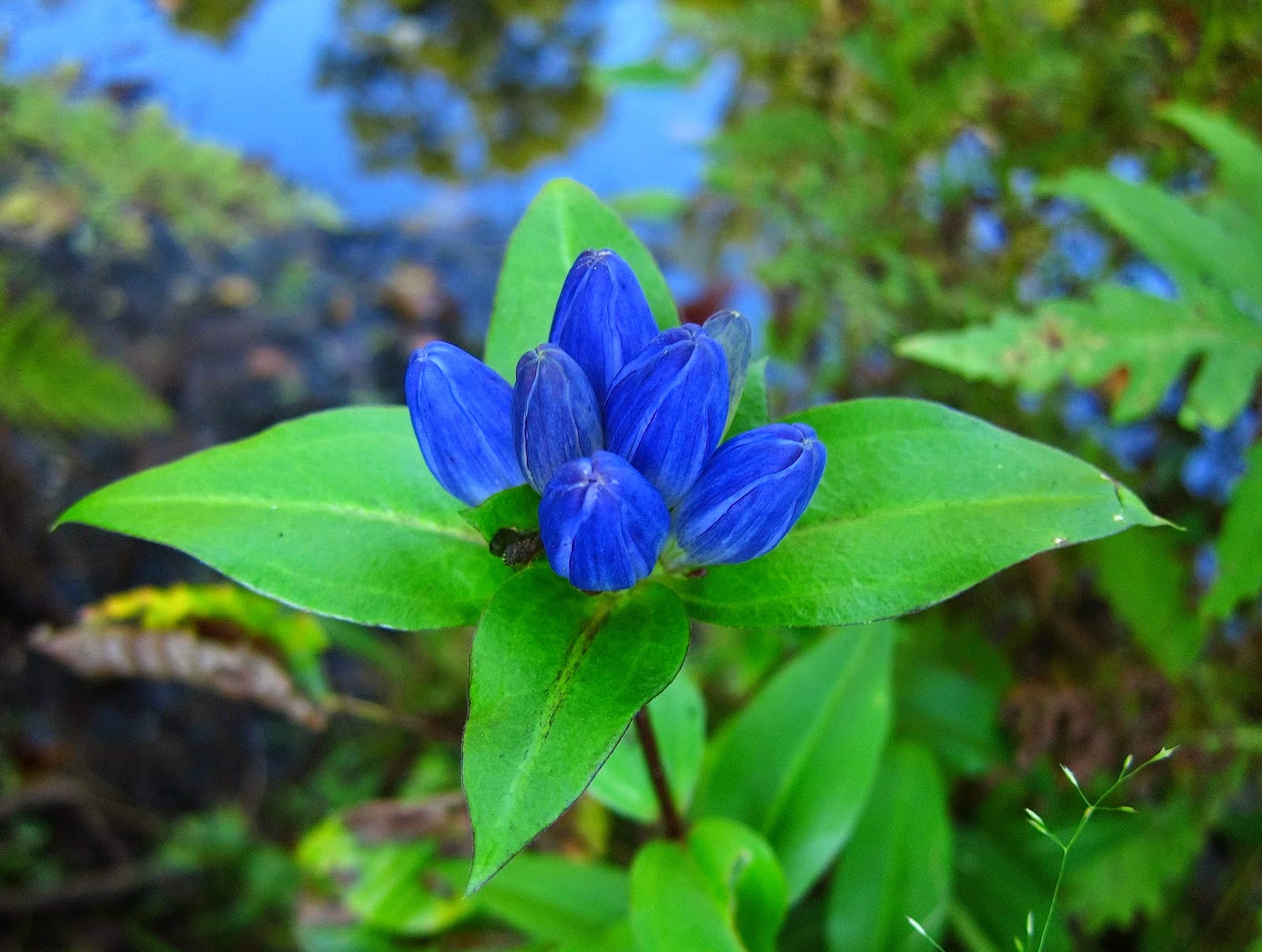 It's always a treat to walk with my botanically expert friends in the Thursday Naturalists, especially when Ed Miller is along to solve the riddle of naming the ferns. We did find many ferns this week at Boice Family Park near Rock City Falls, walking a wooded path that followed closely along the Kayaderosseras Creek. Lots of ferns, but very few flowers along this shady woodland trail: White Wood Aster, Bluestem and Zigzag Goldenrods, and the beautiful blue Closed Gentians topped our brief list of those in bloom.