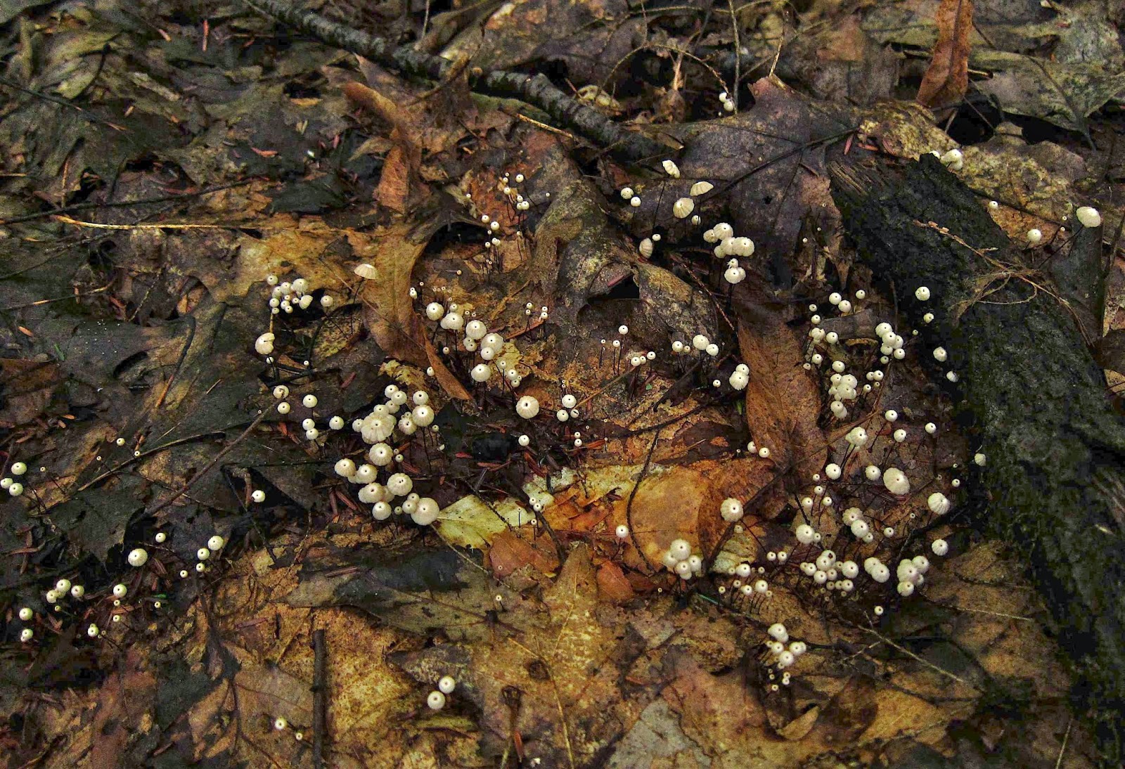 Since we had had rain the day before, we were hoping to find abundant fungi sprouting all over the woods. Well, we did find abundant masses of this tiny Marasmius capillaris, a species of fungus that appears very quickly after rain and then disappears just as quickly when dry weather returns. But that was just about IT. I was hoping to forage for some delicious Honey Tooth or Bear's Head, but they were biding their time.