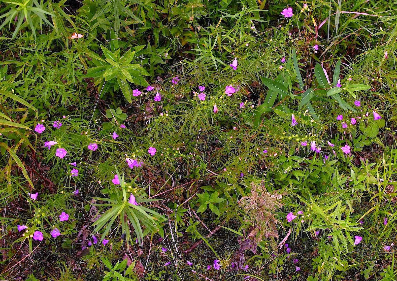 When I reached the river, I found the water level was high, inundating the mud flats I had hoped to explore for the kind of tiny flowers that prefer just such habitat. I found a few blooms of Golden Pert (Gratiola aurea) still holding on, but the Marsh St. Johnswort and False Pimpernel appeared to have packed it in.
