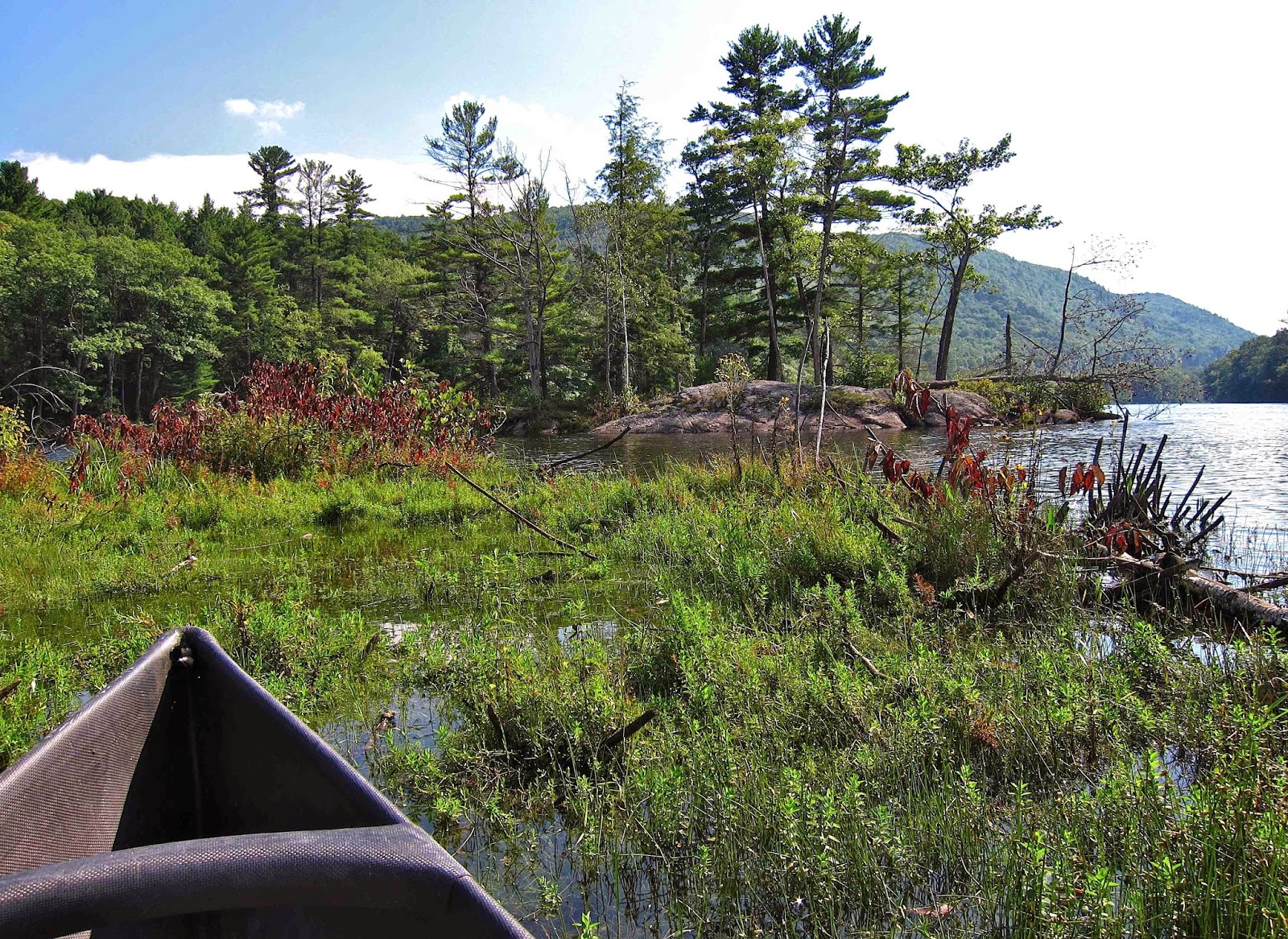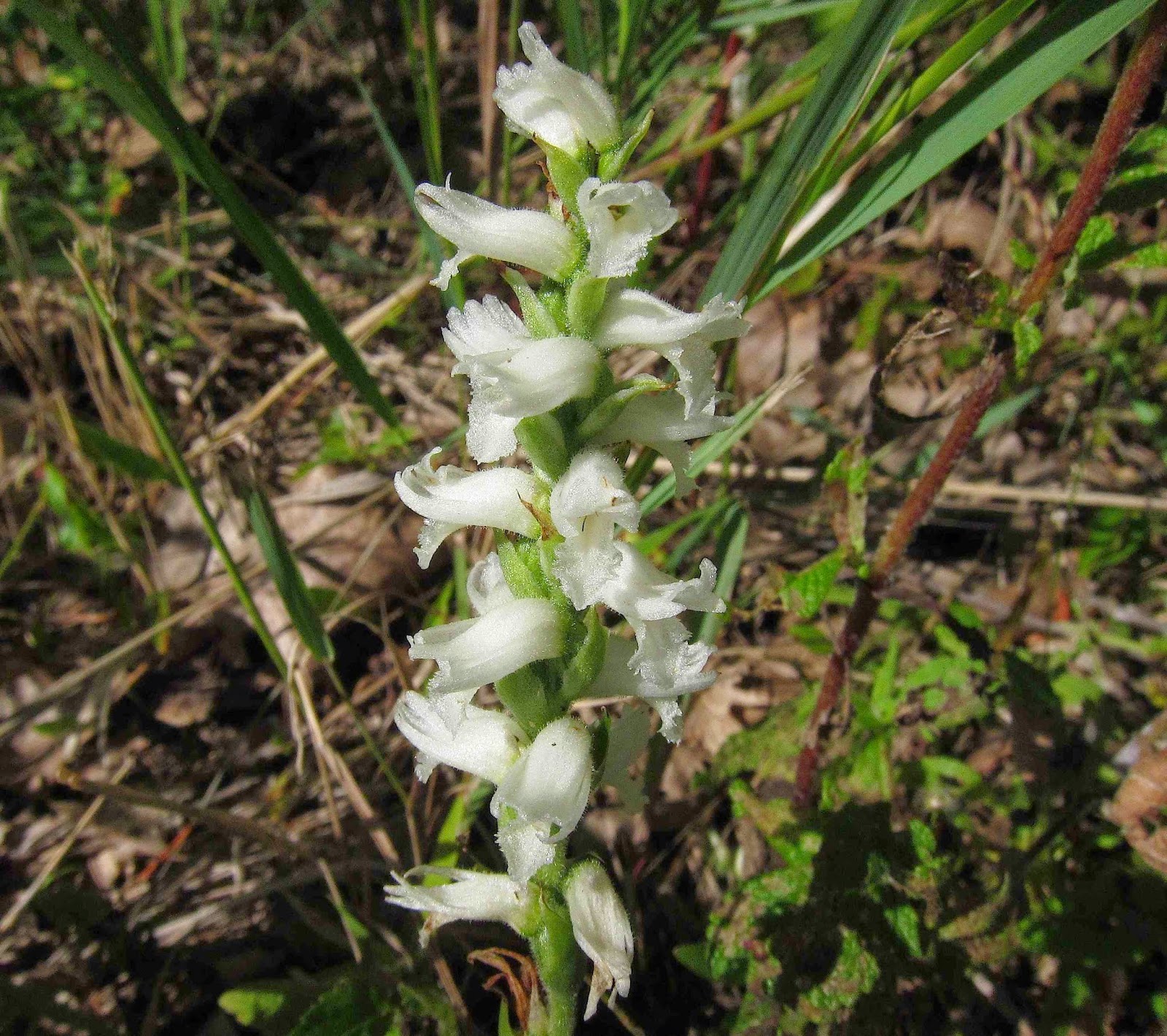 As I rounded a sunny point on the far side of the bay, I was delighted to find dozens of the lovely white orchids called Nodding Ladies' Tresses (Spiranthes cernua) scattered along the shore.