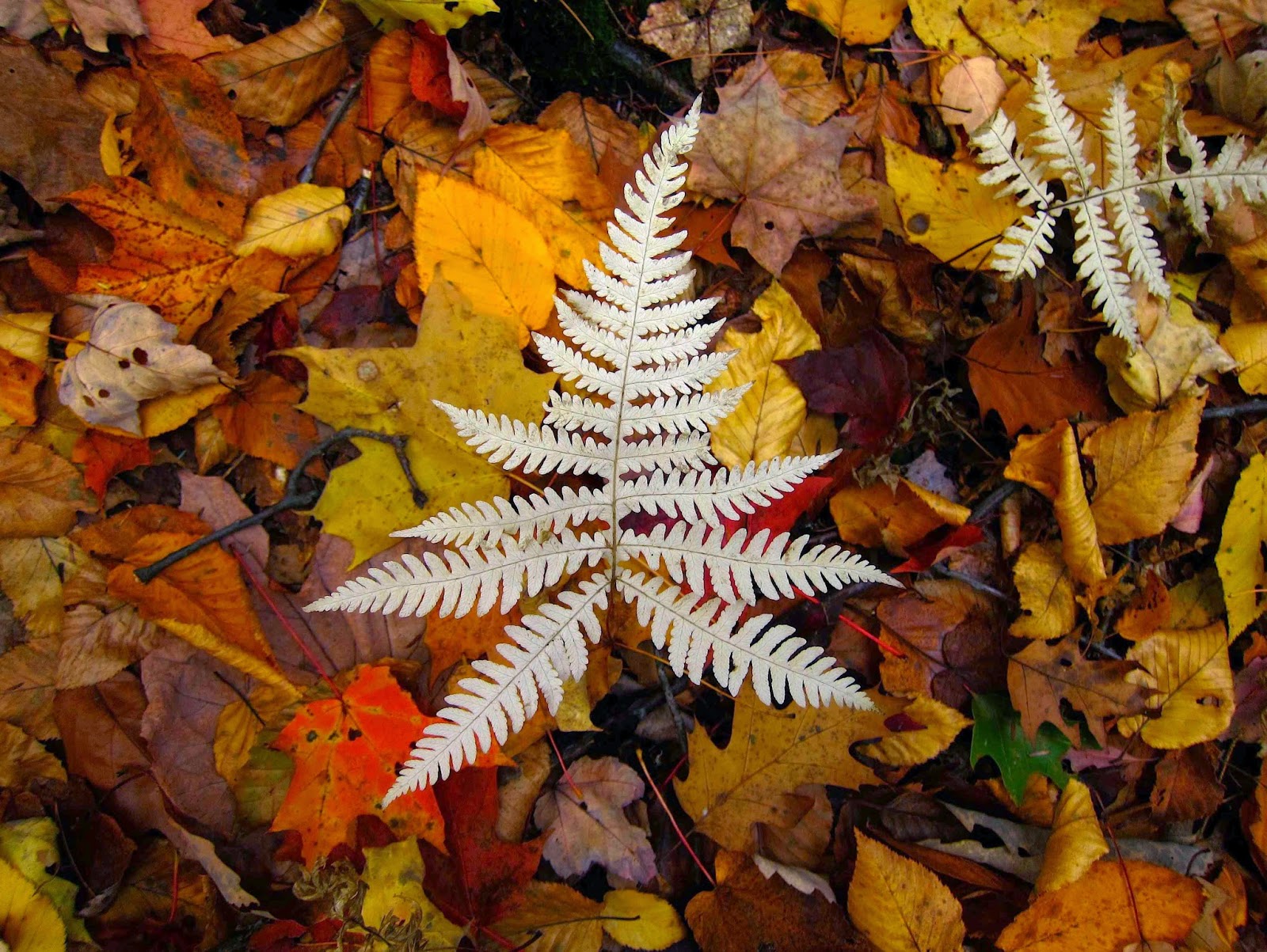 I can never remember how to distinguish between Long Beech and Broad Beech Ferns, but I am pretty confident that this is one or the other, with its final pair of leaflets angled backwards. It is normally a pretty green, but this ghostly white of its dying phase looked quite beautiful against the colorful fallen leaves.