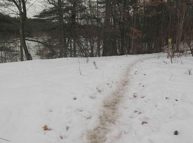 Finding that fungus was enough fun for the day, I decided. The ankle-twisting pot-holed trail around the pond did not look the least bit inviting. And the gray sky was darkening, even though it was early afternoon.  And that darned snow still lay thick over anything of interest on the forest floor.  A warming trend is forecast for later this week.  Let's see what changes that warming trend will bring.  Later!